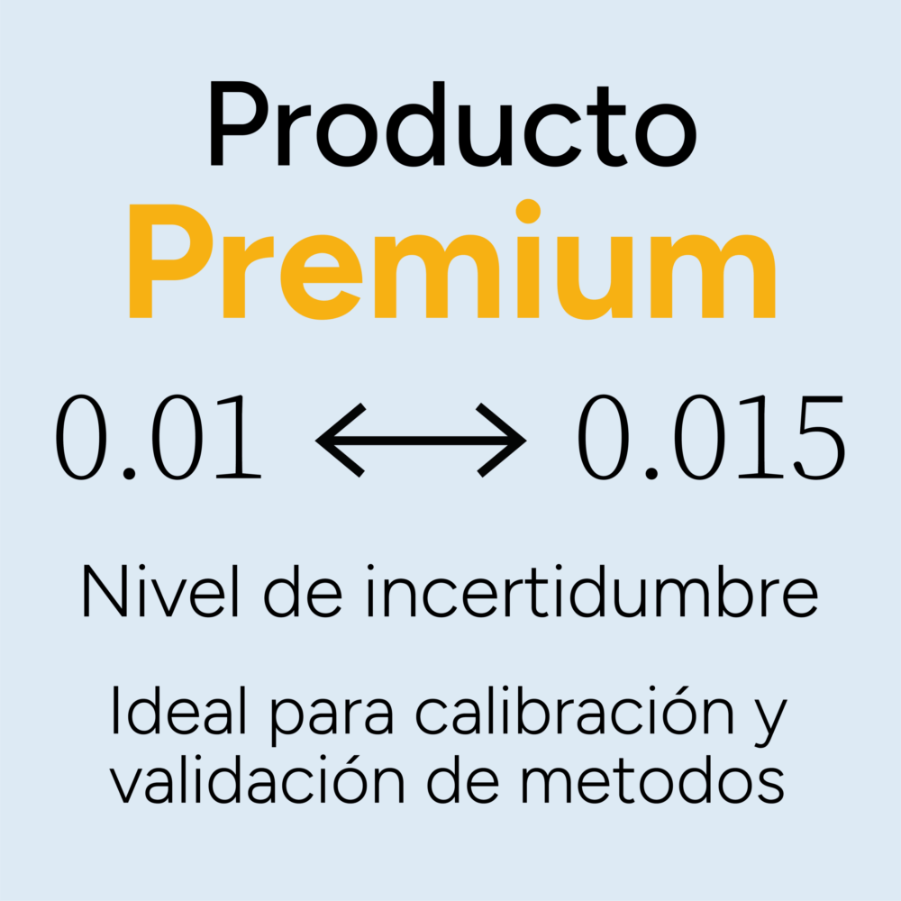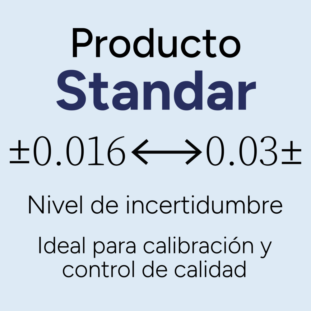 El MRC se presenta con valores nominales acreditados que permiten cubrir las necesidades de diferentes sectores. Su vigencia es de un año sellado y un año adicional después de su apertura, manteniendo su estabilidad y exactitud durante todo el periodo de uso.